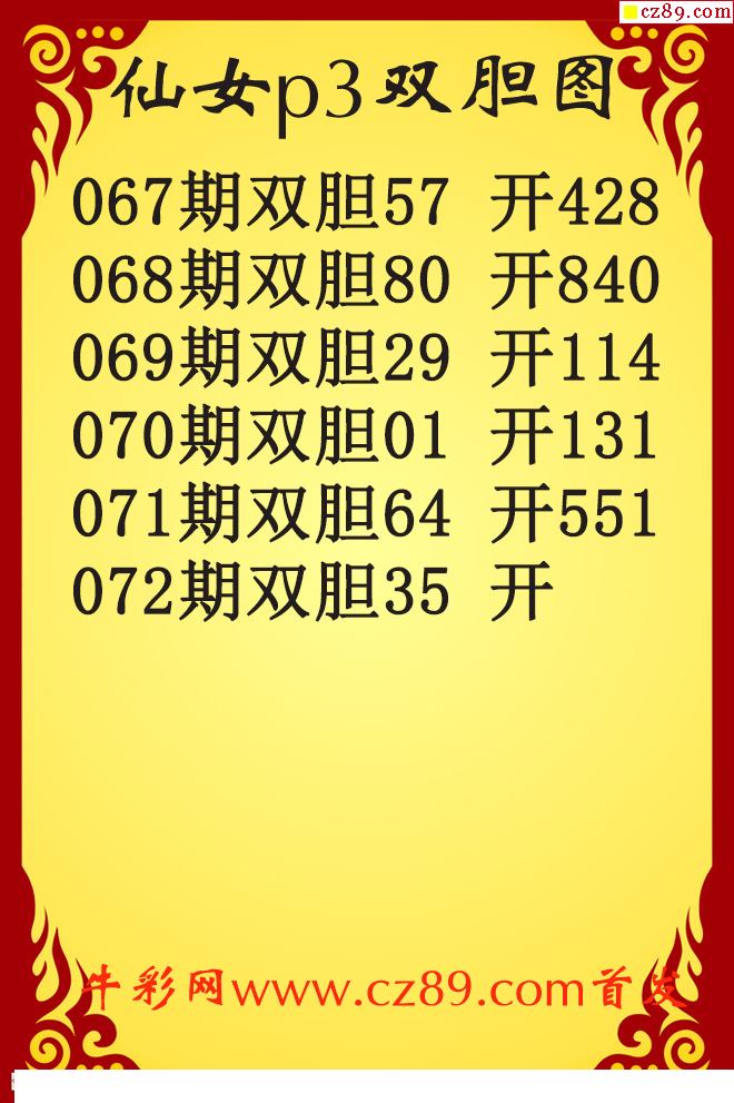 鸿运当头双胆报号072期体彩P3图谜