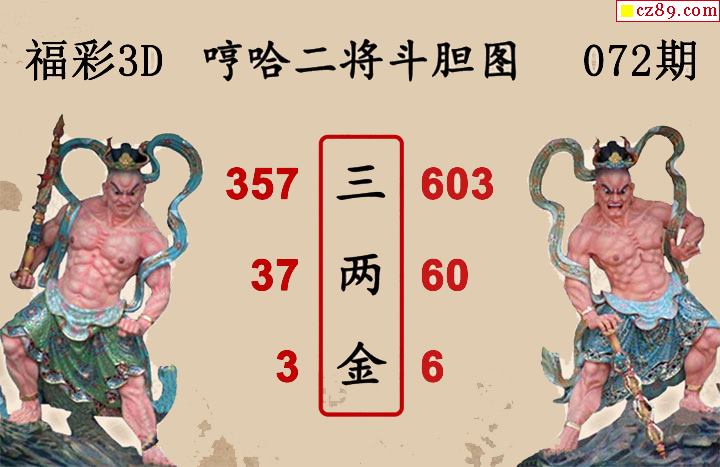 福彩3D2026072期 白鱼舟3D图谜哼哈二将斗胆图