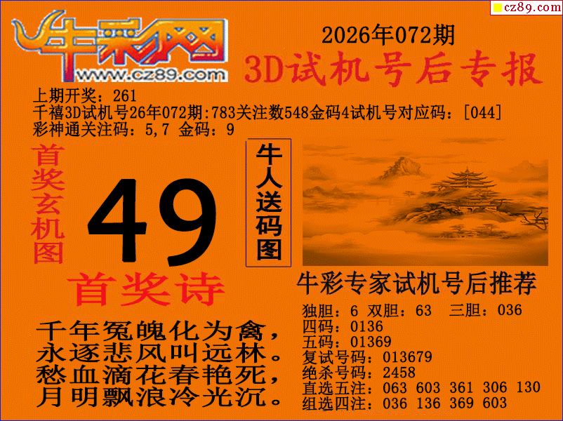 牛彩版3D预测彩报图26年072期打印版