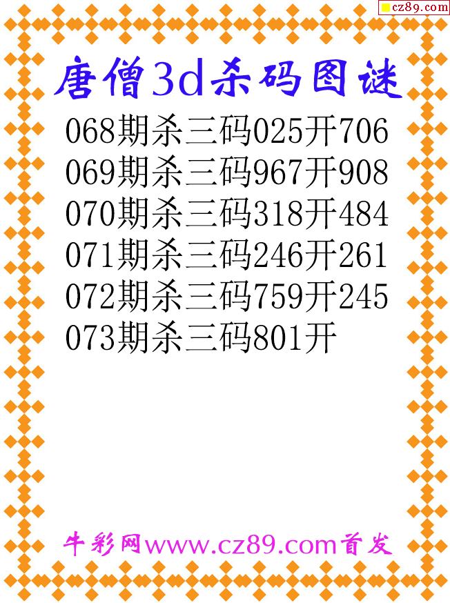 唐僧杀码26073期3d原创图谜