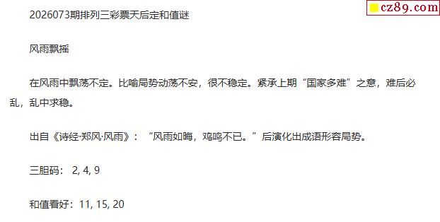 彩票天后p3定和值谜26年073期
