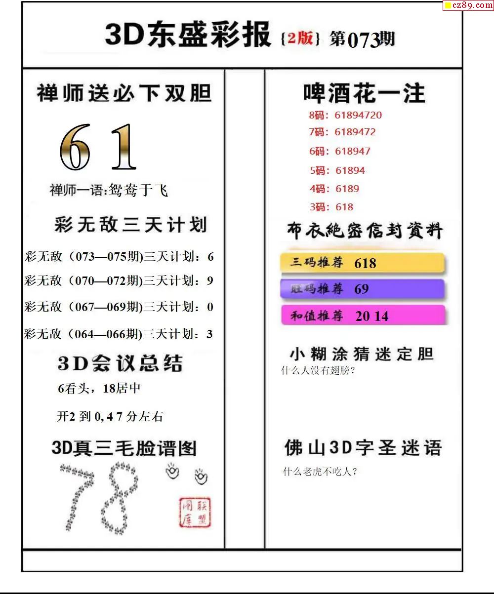 牛彩版3D字谜彩报图26年073期打印版