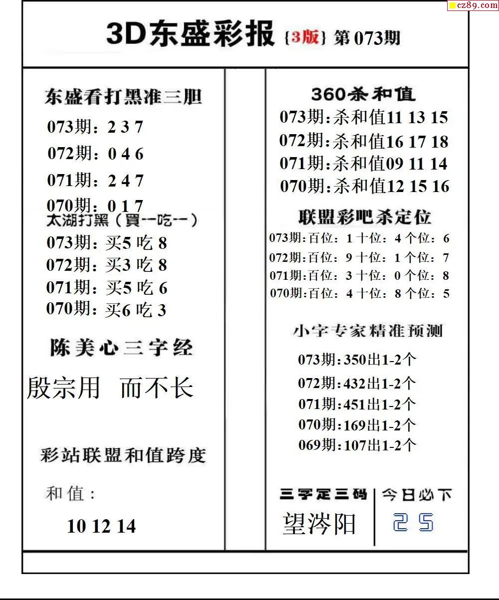 牛彩版3D预测彩报图26年073期打印版