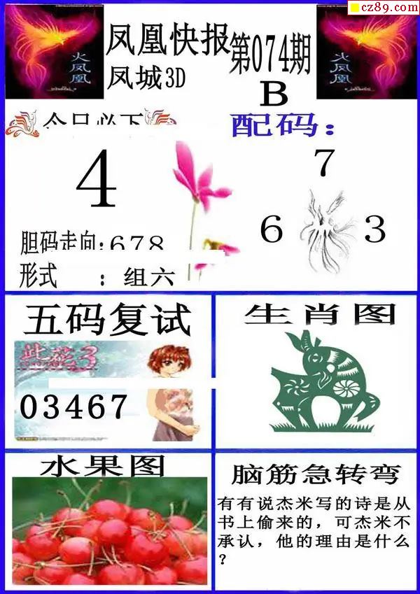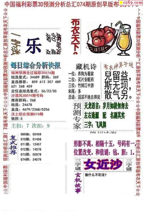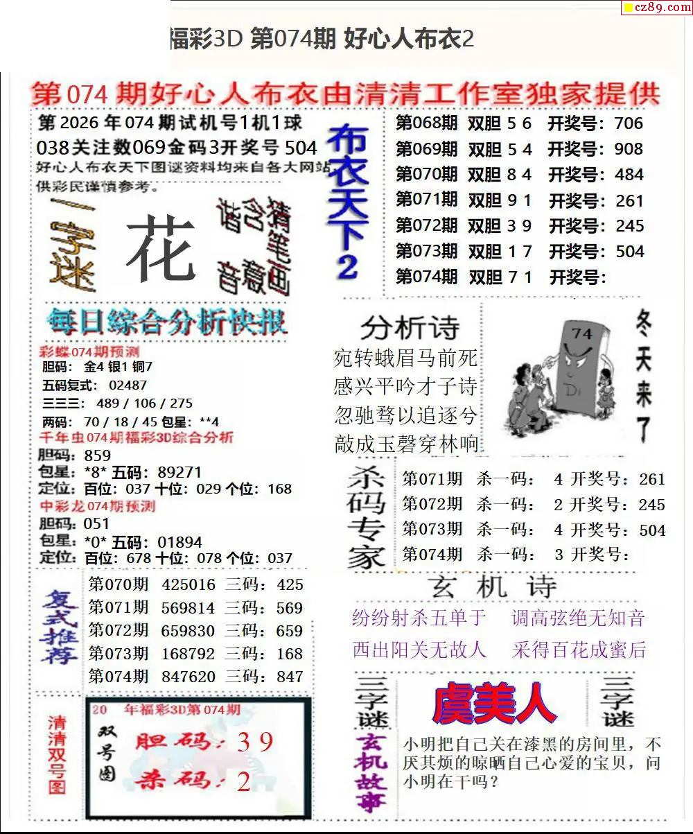 2026074期3D图谜汇总(一)