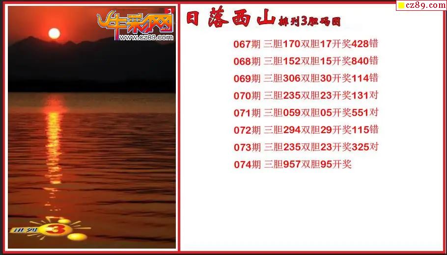 2026074期P3日落西山胆码图谜