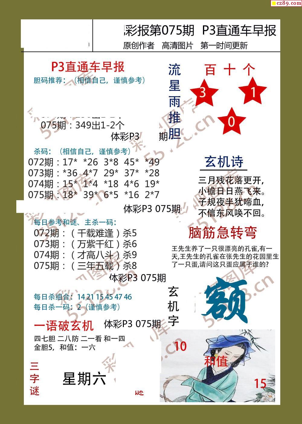 直通车早版075期体彩p3图谜