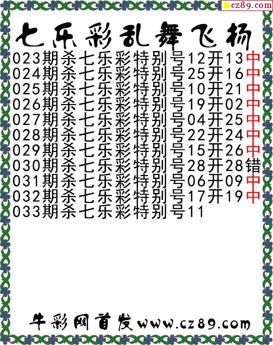七乐彩2026033期乱舞飞扬今日图谜 10中9