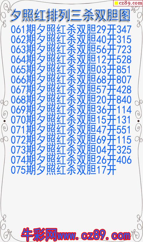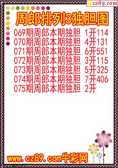 2026年075期牛彩网体彩P3画迷图谜汇总分享