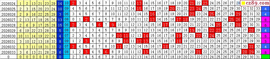 26年034期飞向阳光福彩双色球预测图表汇总
