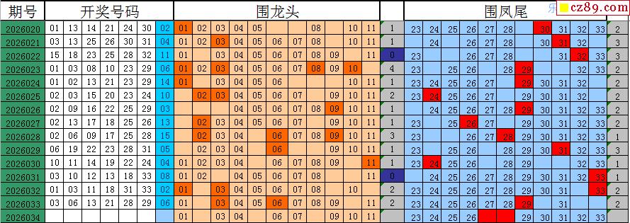 26年034期秋雨龙头凤尾走势图表