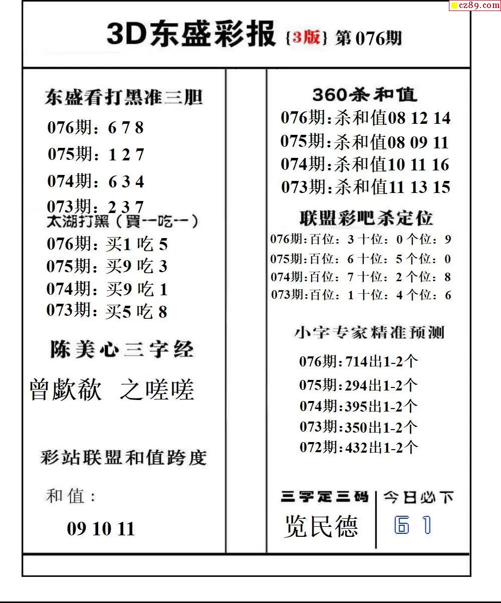 福彩3D2026076期东盛彩报+精品三毛会员版