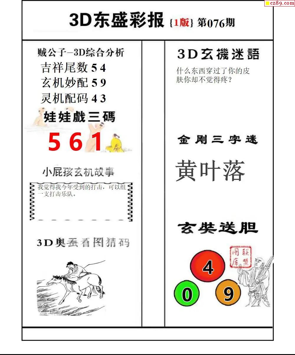牛彩版3D字谜彩报图26年076期打印版