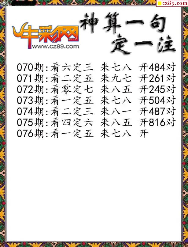 牛彩版3D字谜彩报图26年076期打印版