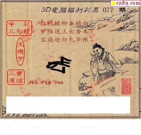 五福财星三胆2026077期3d图谜(原创)
