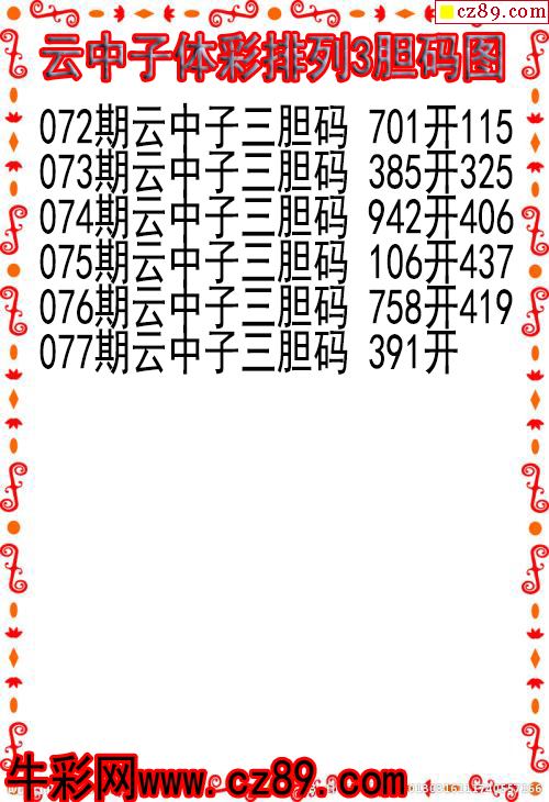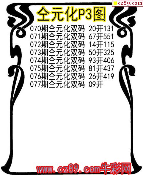 2026年077期牛彩网体彩P3画迷图谜汇总分享