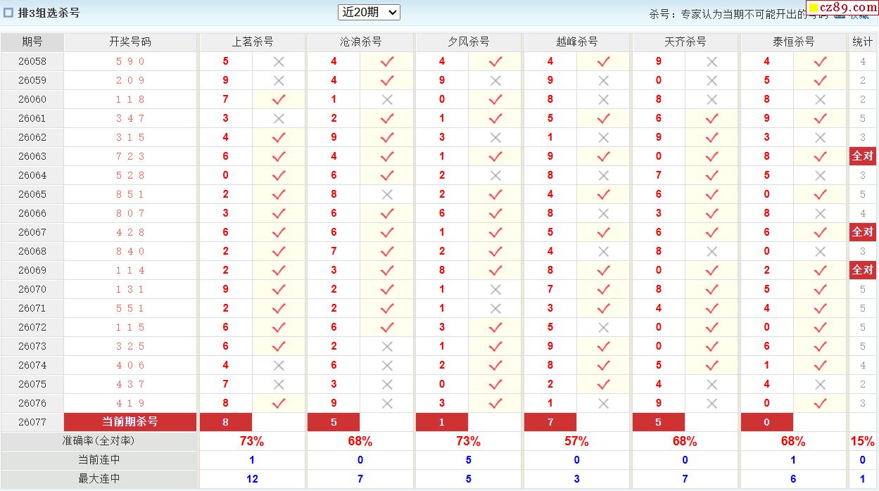 26年077期澳客专家体彩P3杀号定码推荐
