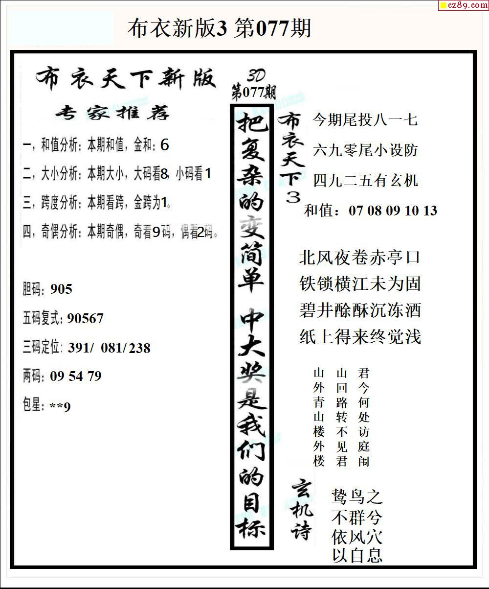 2026077期3D图谜汇总(七)