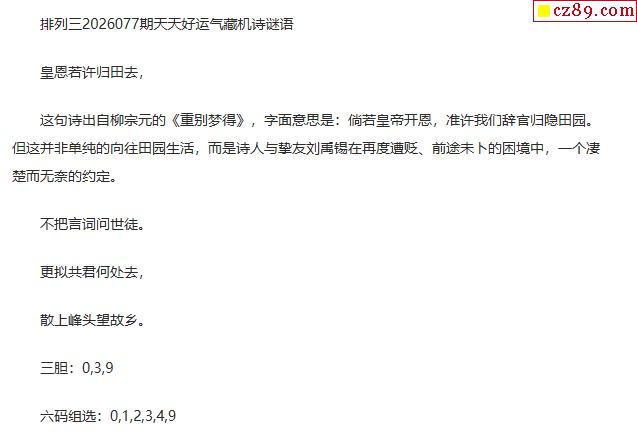 2026年藏机图077期 正版体彩P3藏机图诗汇总