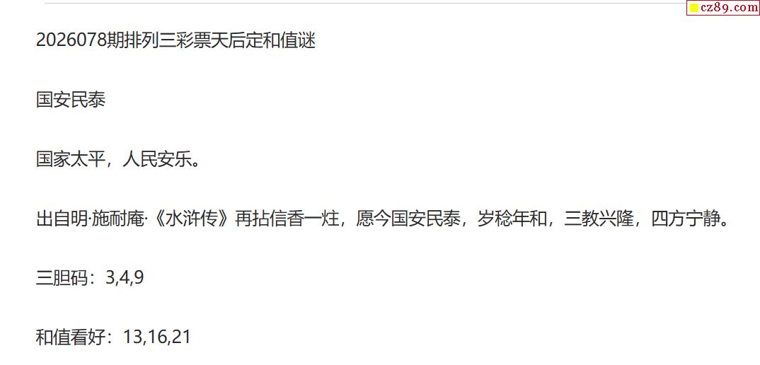 体彩P3字谜汇总2026年078期超级马克p3今日字迷总汇