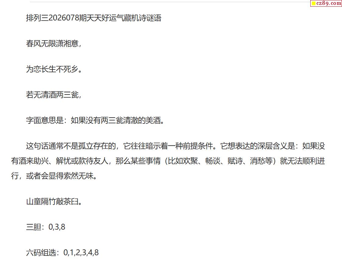 2026078期排列三铁算解天机老人字谜谜底答案