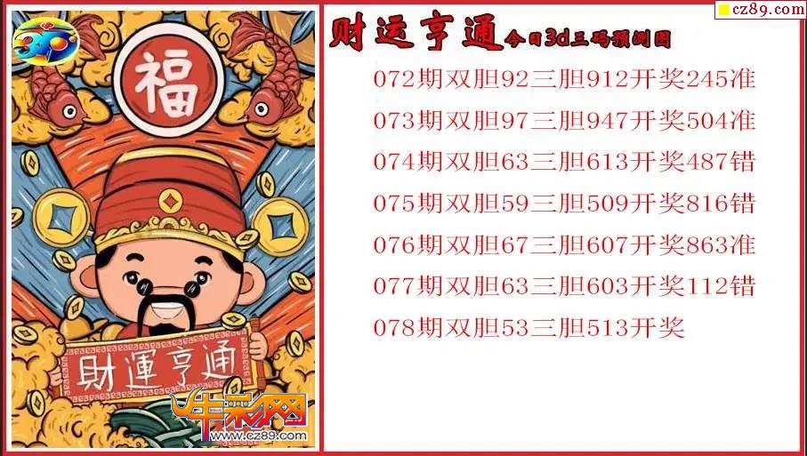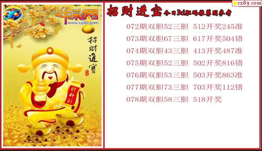 26年078期3d 招财进宝今日胆码推荐图参考