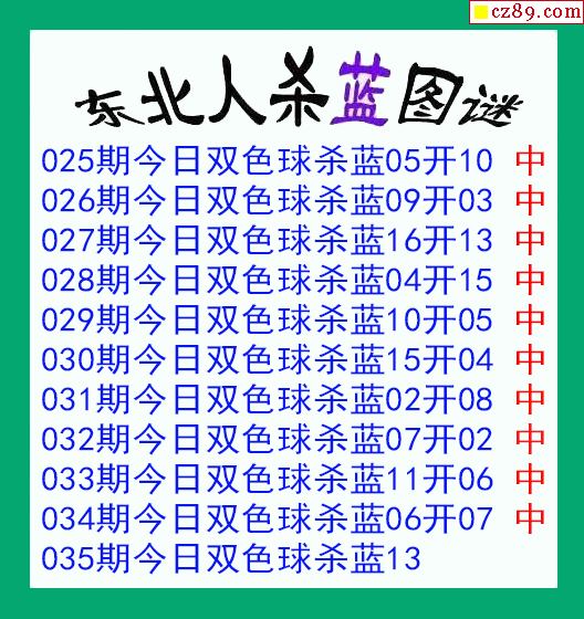 东北人杀蓝球035期双色球图谜 10中10