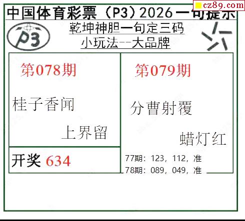 乾坤一句定三码26年079期P3图谜