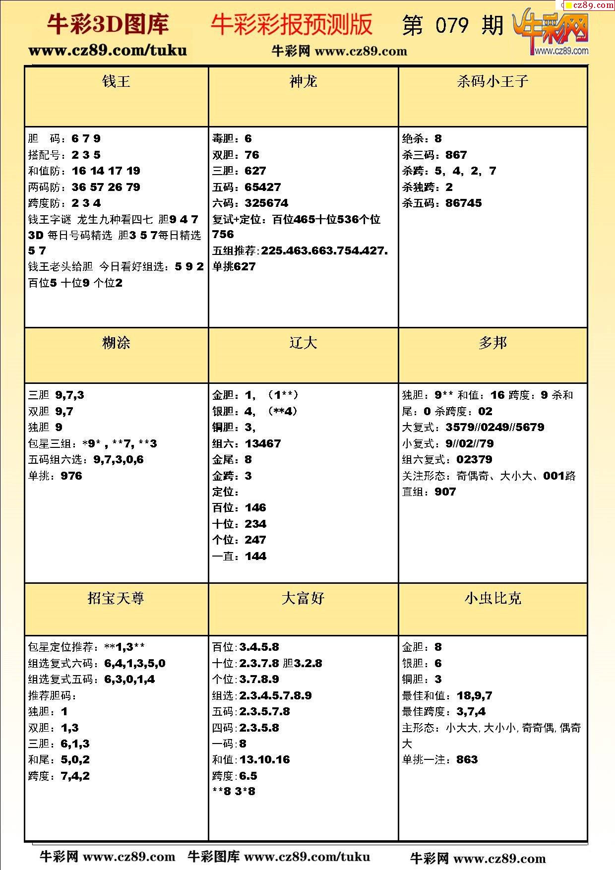 牛彩版3D预测彩报图26年079期打印版