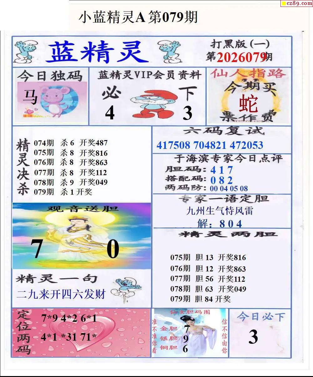 福彩3D2026079期蓝精灵AB版图谜