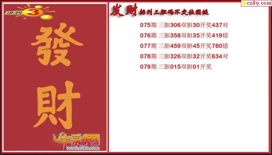 2026079期P3发财胆码不定位图谜