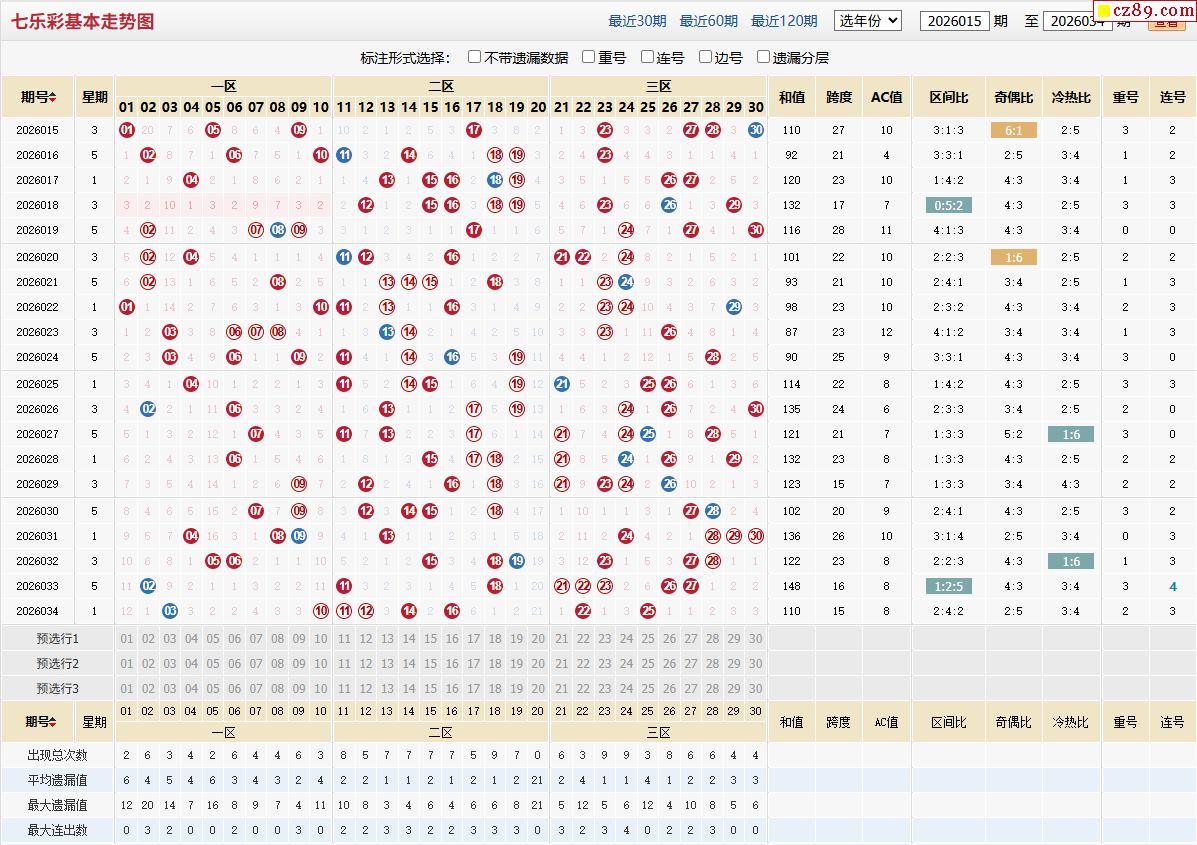 七乐彩基本走势图