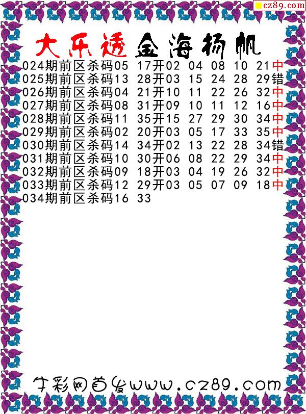 大乐透2026034期金海扬帆前区杀号图谜 10中8