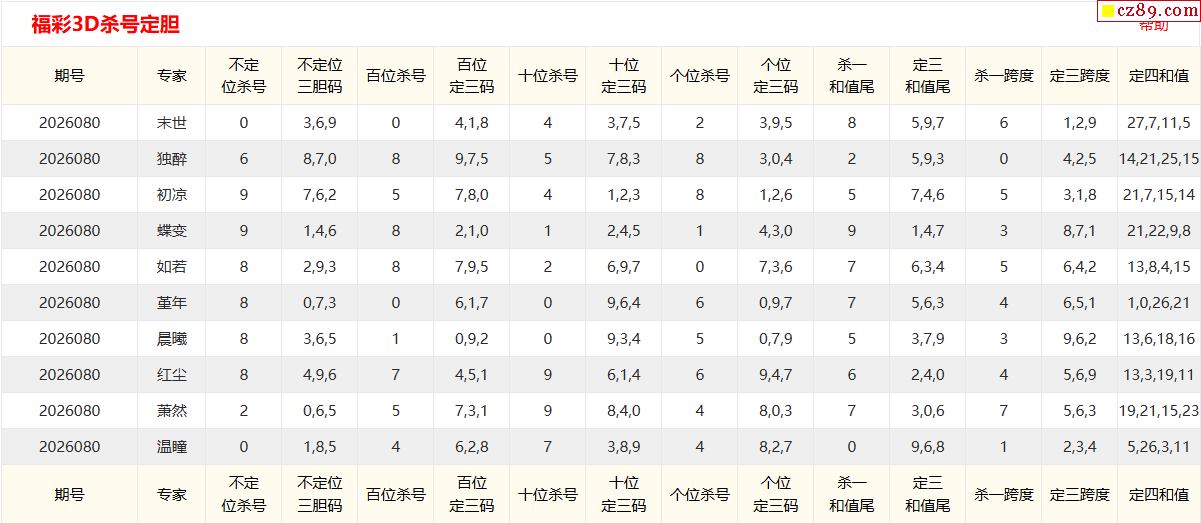 26年福彩3D预测080期 糊涂王包星三组推荐