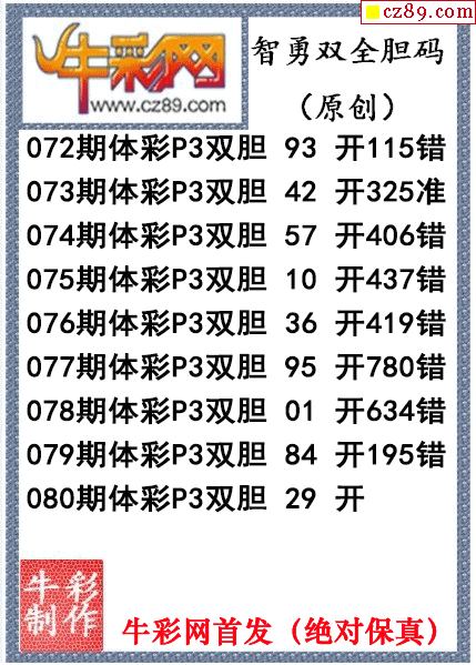 海城胆神心跳一码080期体彩P3图谜