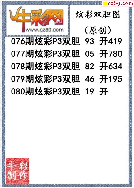 鸿运当头双胆报号080期体彩P3图谜