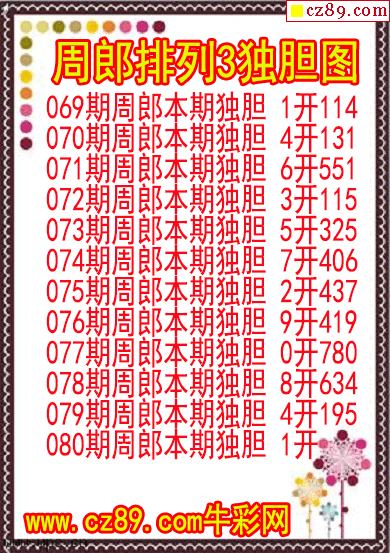 26年080期周郎排列3独胆图