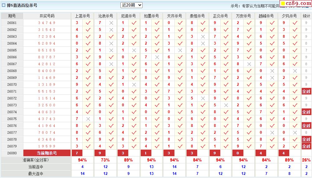26年080期彩宝贝专家体彩P3杀号定码图表