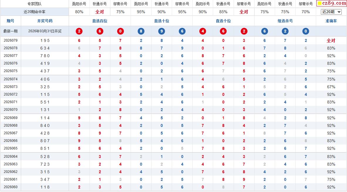 26年080期彩宝贝专家体彩P3杀号定码图表