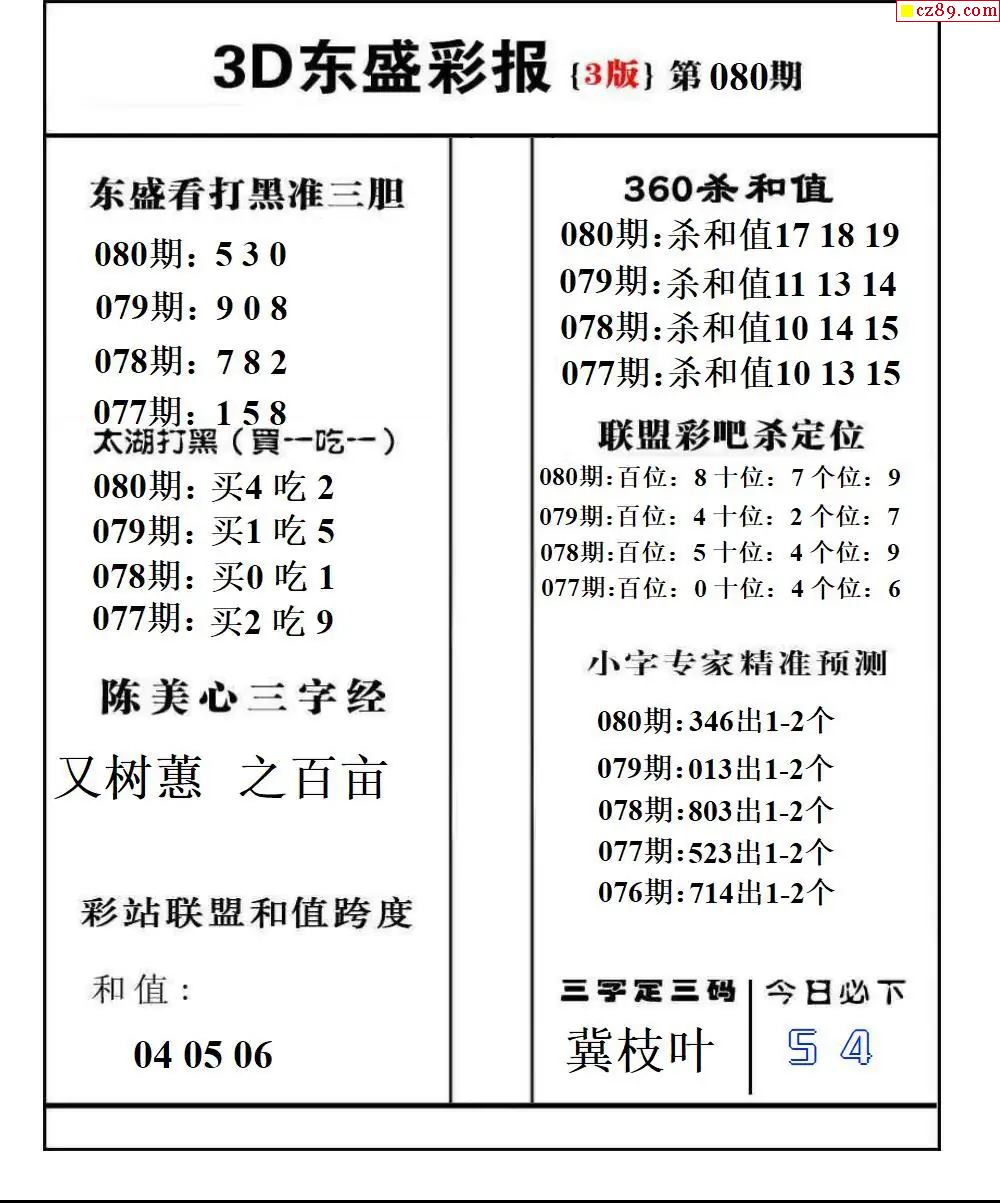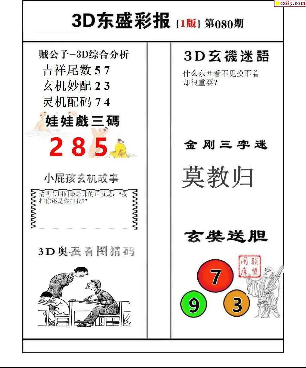 福彩3D2026080期东盛彩报+精品三毛会员版