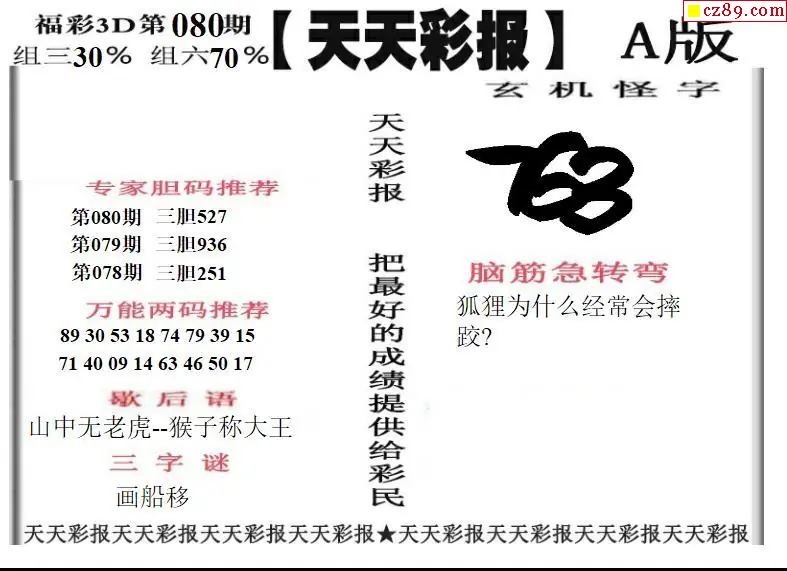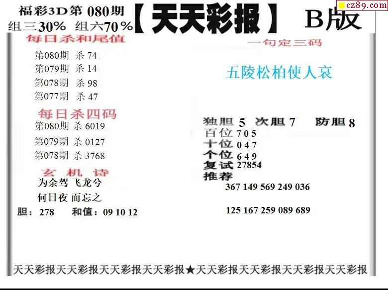 福彩3D2026080期天天彩报A版 天天彩报B版