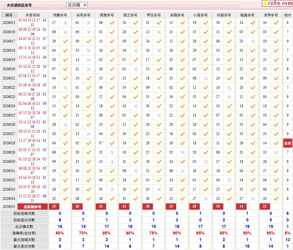26年035期彩票专家超级大乐透前后区杀号图表