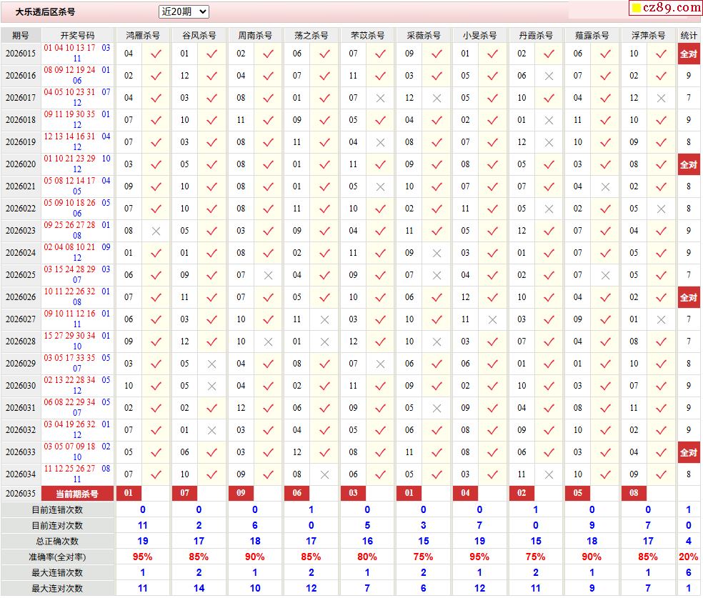 大乐透2026035期天下无贼后区杀号图谜 10中8