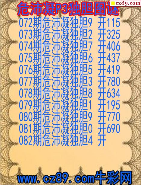 2026年082期牛彩网体彩P3画迷图谜汇总分享