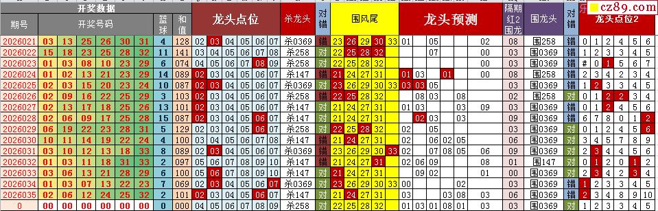 26年036期秋雨龙头凤尾走势图表