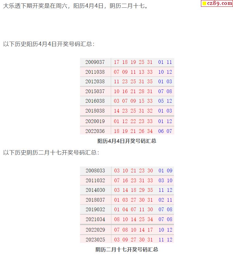 历史上的今天大乐透4月4日开奖号码汇总