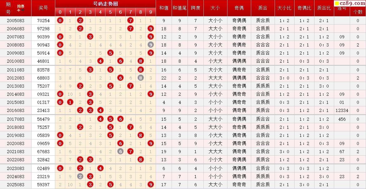 第083期体彩P5历史同期对比