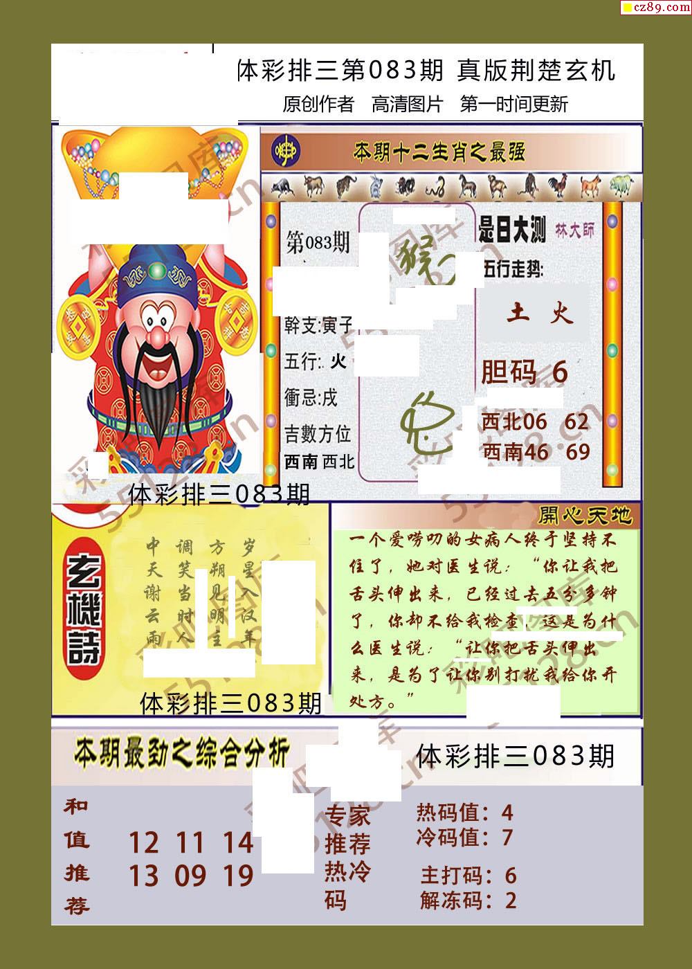 2026年083期牛彩网体彩P3画迷图谜汇总分享