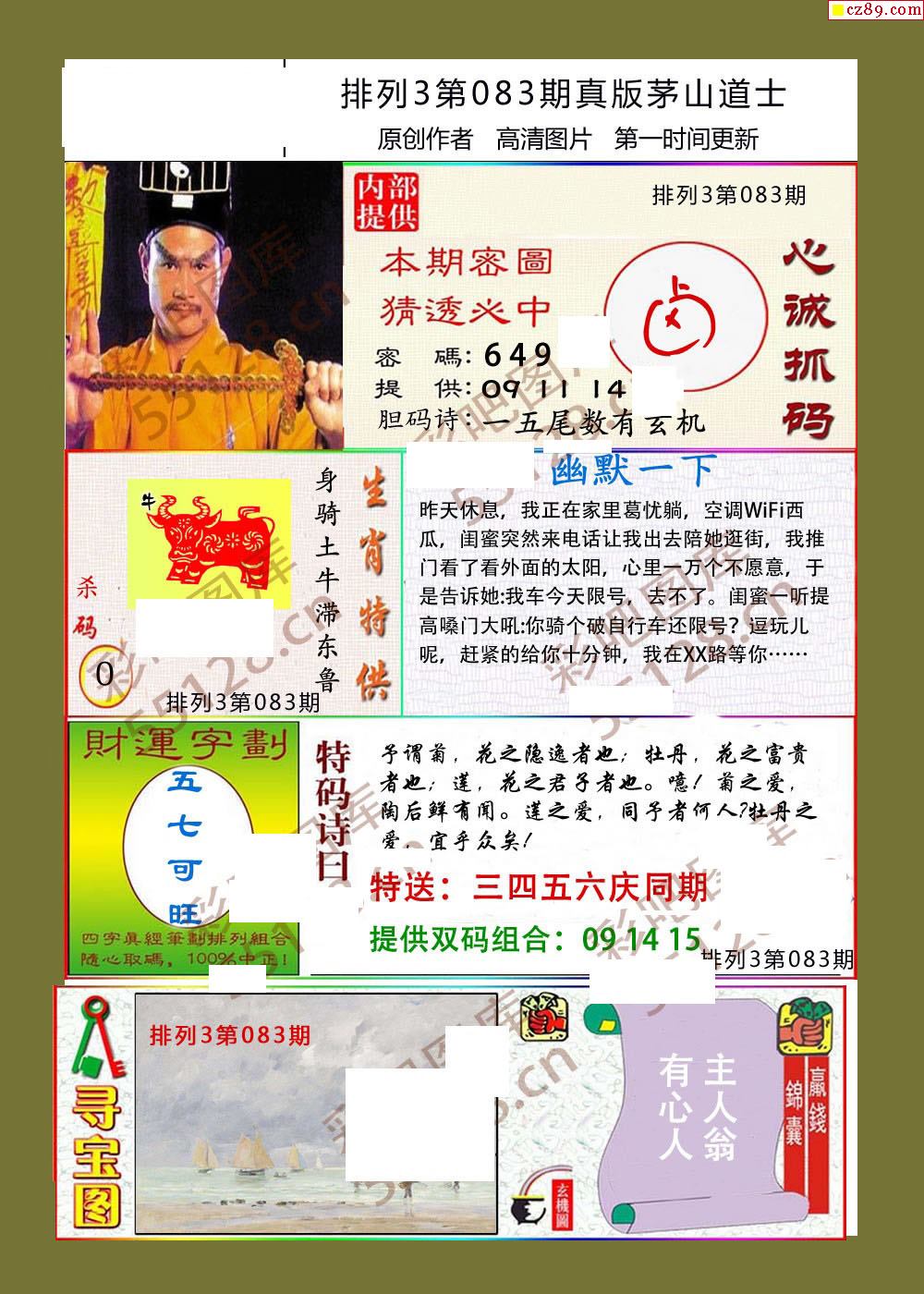 茅山道士083期体彩p3图谜