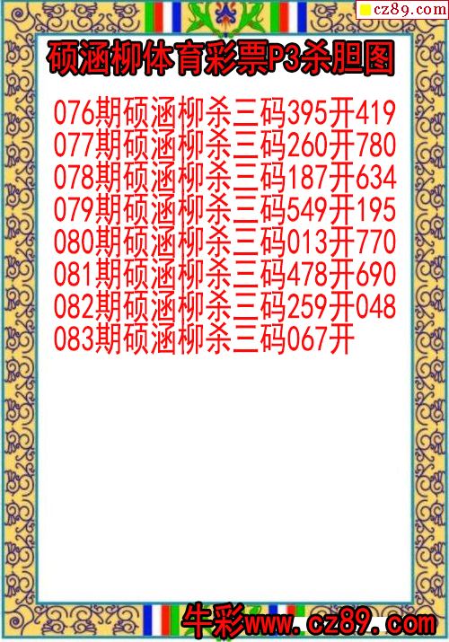 26年083期公孙梦体育彩票P3杀码图
