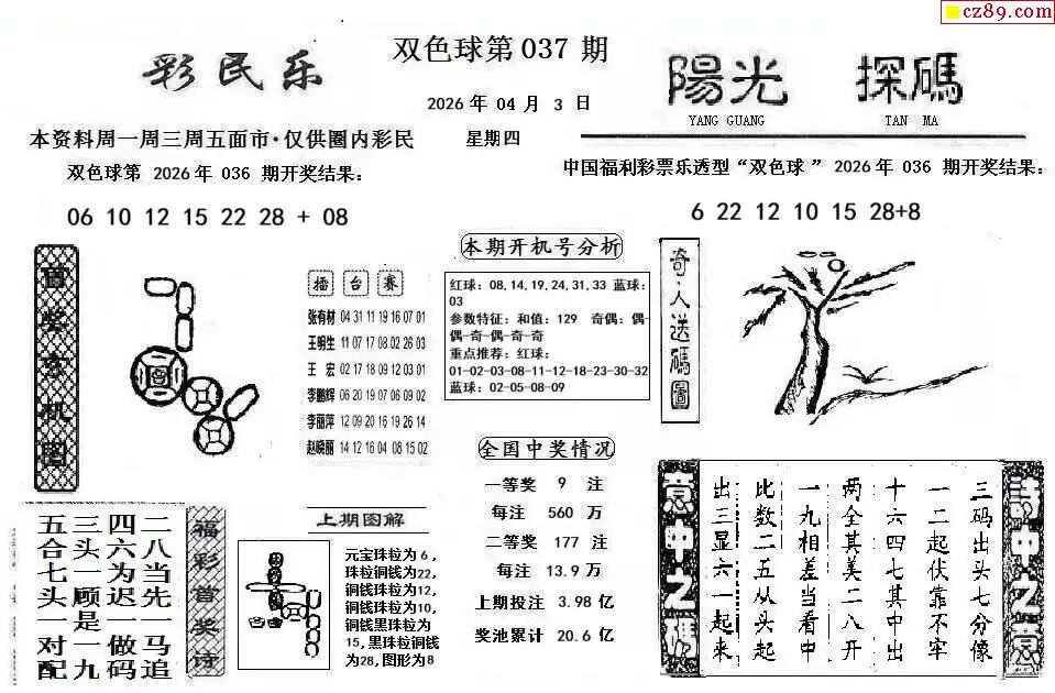 双色球2026037期 彩民乐+阳光探码图文版